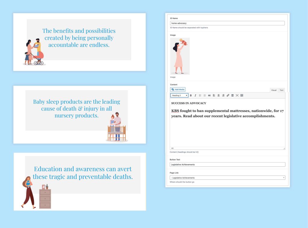 We partnered again with Craneco. Studio to develop a professional, credible website for her client, focused on banning supplemental crib mattresses and unsafe baby products to limit accidental infant deaths. As mothers, this project was especially meaningful to us, giving us the opportunity to make a difference by helping to spread the message effectively. Craneco. provided a beautiful design with some intricate details, and our role was to bring it to life with precision and care.